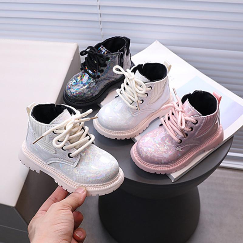 2025 All Season Children Shoes Designer Colorful Shiny Soft Soled Ankle Boots Fashion Versatile Anti Slip Boots Zapatillas Niña