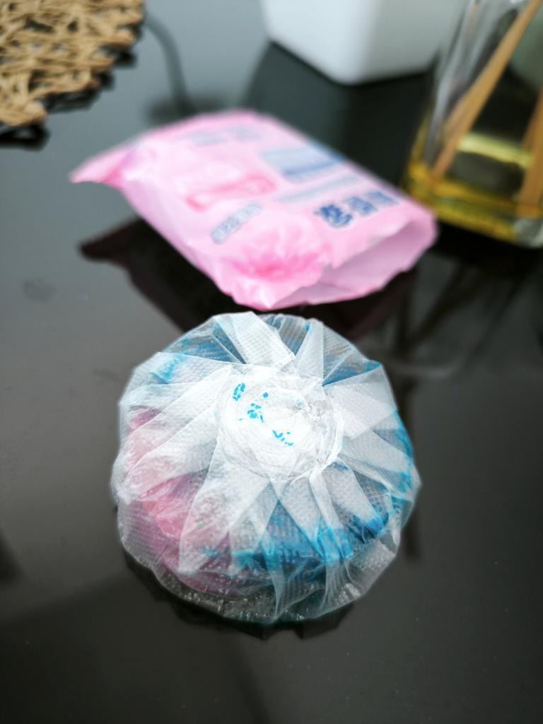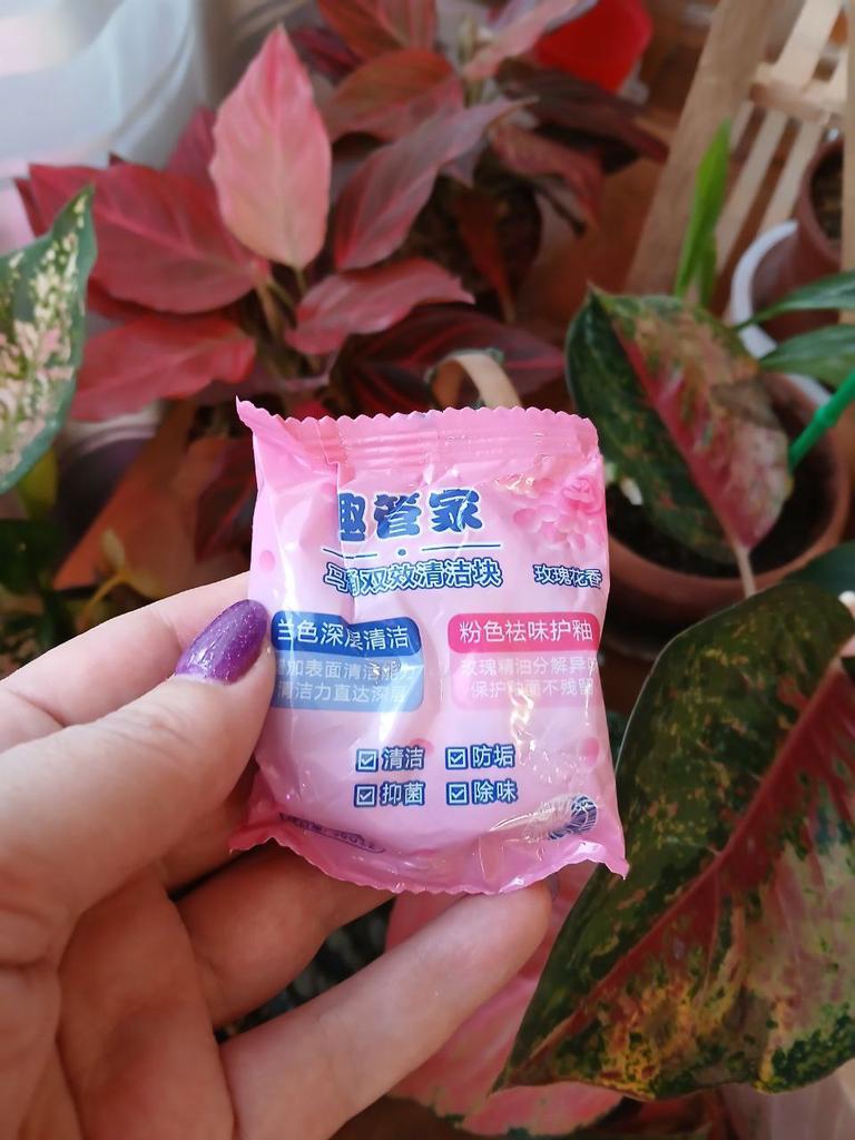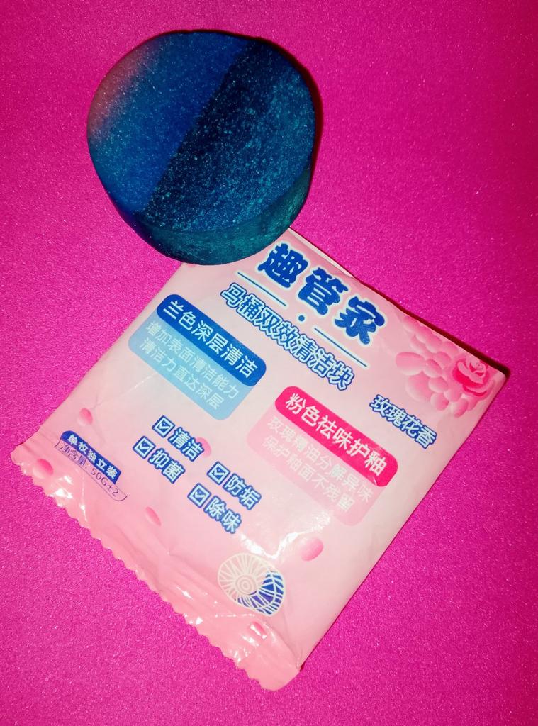 Cleaning tablet for toilet 🚽 Is placed in the toilet tank Colors the water blue Has a rose scent Lasts for about a month, depending on the frequency of flushing Impressions: with this product, you really don't have to clean the toilet as often.