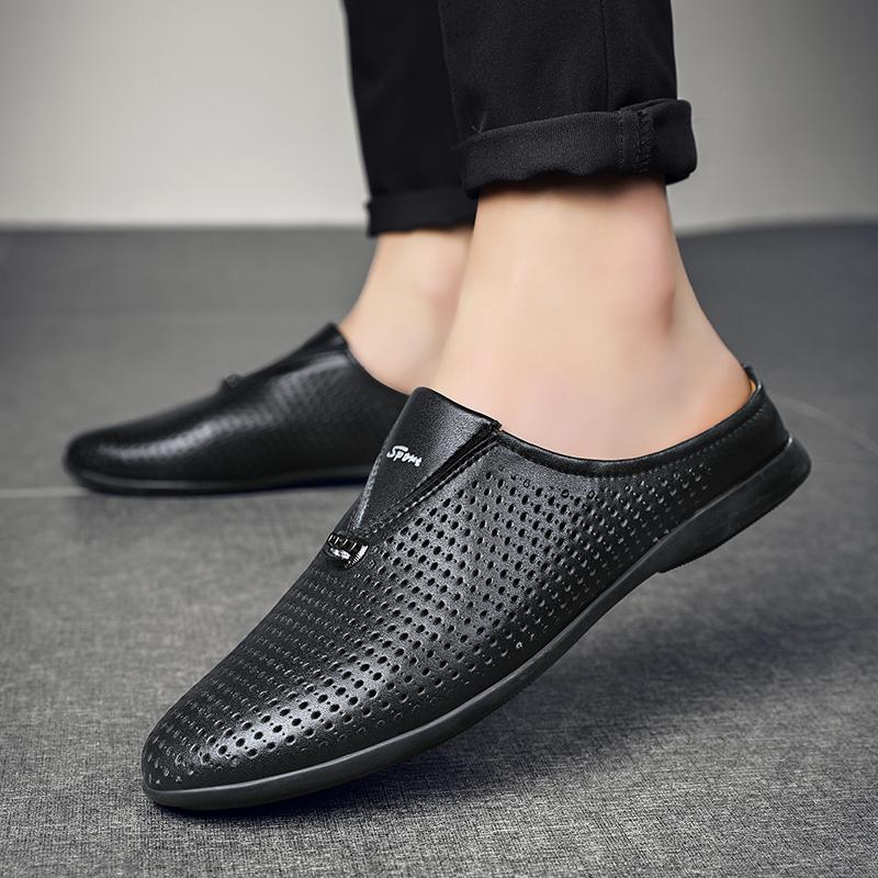 Luxury Designer Italian Men Half Shoes Leather Mens Casual Shoes Drop Ship Coiffeur Mules Man Slides Backless Loafers Slipper
