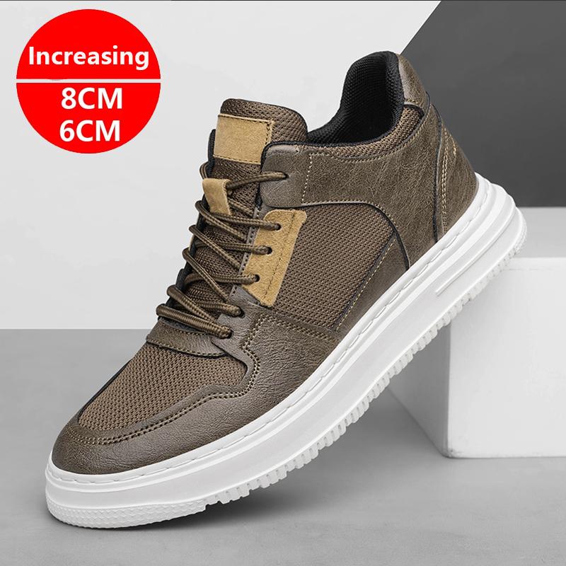 2025 Casual Sneakers Genuine Leather Height Increasing Skateboard Shoes For Men 6cm 8cm Invisible Elevator Taller Lifting Flats