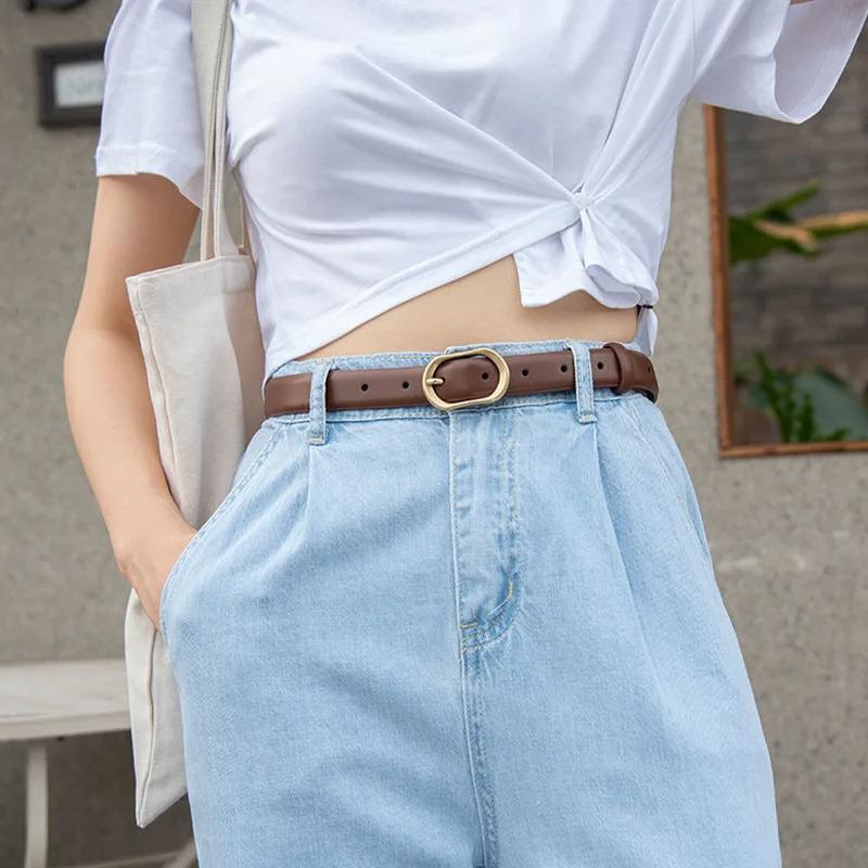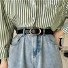 Women Metal Oval Pin Buckle Belt Fashion PU Leather Long Thin Adjustable Waistband Chic Jeans Pants Decorative Girdle Strap