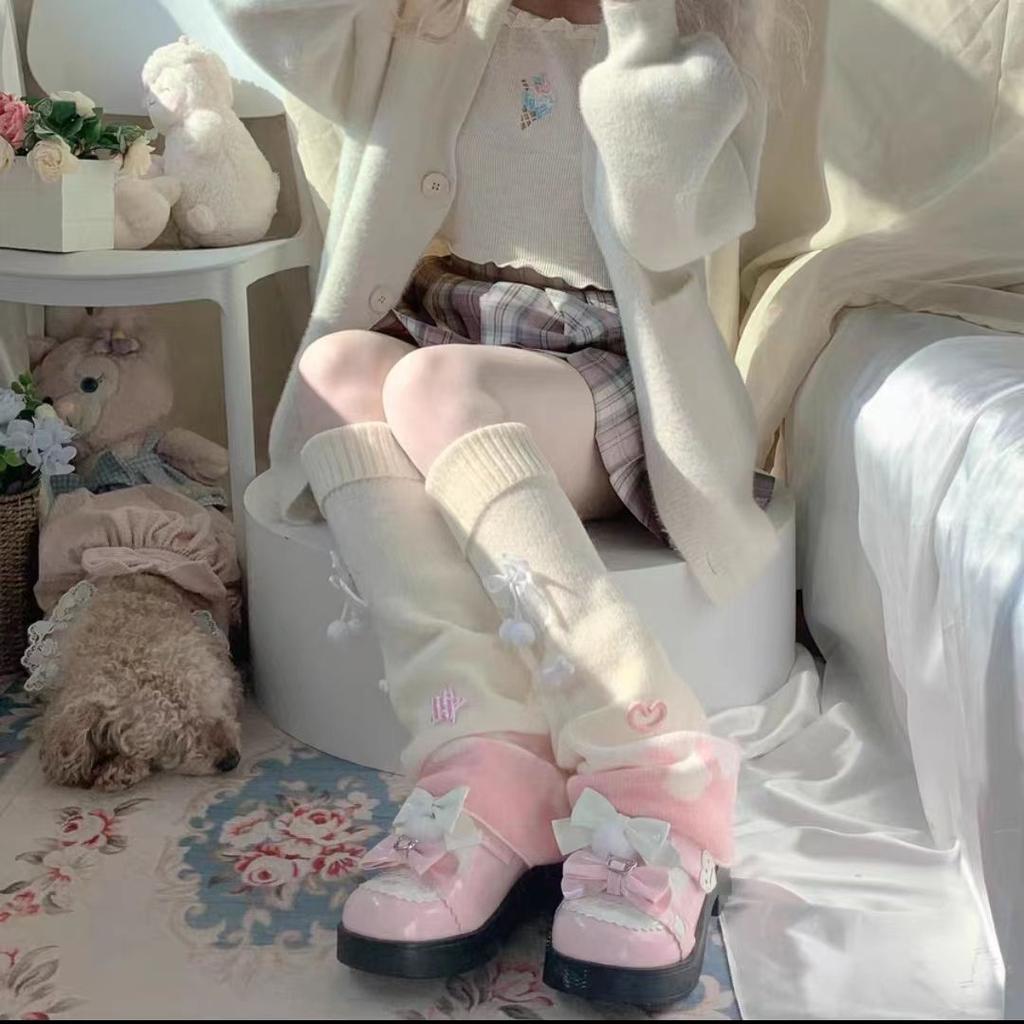 Cute Bowknot Calf Lolita Japanese-style Knitted Leg Warmers Slouchy JK Knee-high Socks Autumn Winter Warm Sweet Girl Socks