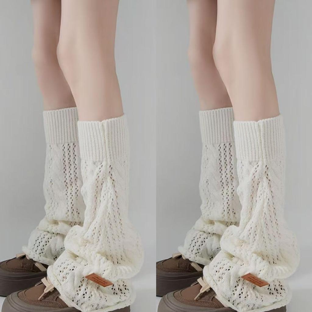 Women's Thin Hollow-out Leg Warmers for Spring and Summer Knitted Breathable Calf Flared Slouchy Long Socks
