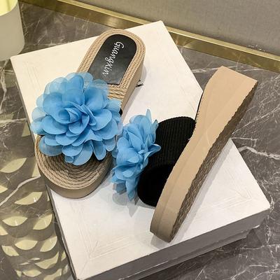 Fashion Women's New Flower Small Figure High Platform Sandals Wear Soft-soled Non-slip Beautiful Cool Slippers In Summer