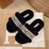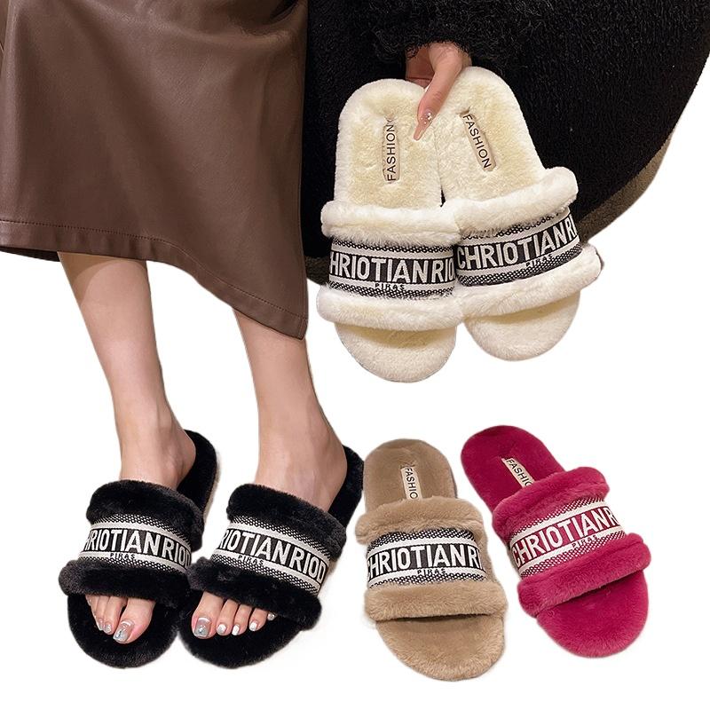 Size 35-42 Women's Slippers for Wearing Outside Flat Slippers Women's Autumn and Winter Letter Suede One Foot Cotton Slippers