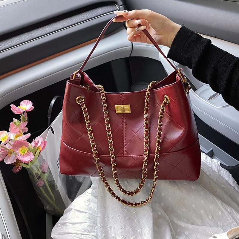 New High-end Fashion Solid Color Embroidery Thread Chain Tote Bag Portable Shoulder Trendy Women's Bag