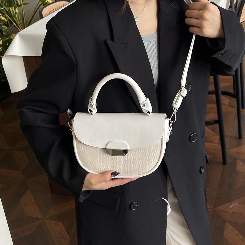 Spring New Niche Fashion Contrasting Color Saddle Bag Portable Shoulder Crossbody Trendy Women's Bag