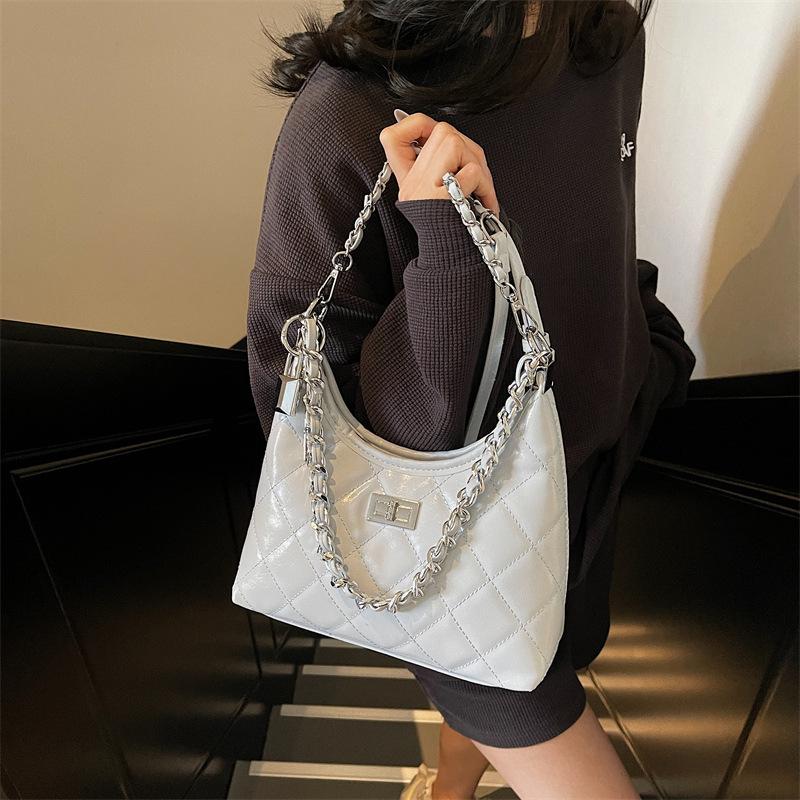New Fashion Light Luxury Simple Solid Color Embroidery Thread Diamond Hippie Bag Shoulder Crossbody Trendy Women's Bag