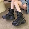 Classic Lace-up Platform Boots Women Mid-calf Flat Boots for Women Mesh Leather Splicing Light Non-slip Breathable Casual Boots
