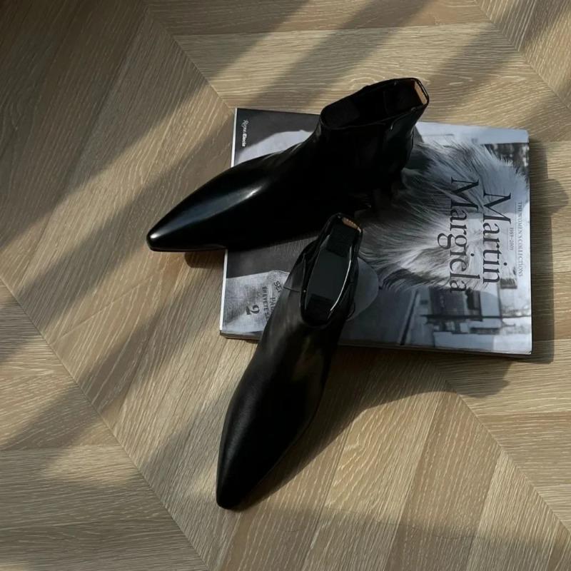 Retro Short Boots Women's Autumn/Winter Genuine Leather Pointed Chelsea Boots Womens Flat Bare Shoes for Women Thin Shoes Women