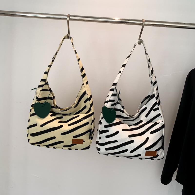 New Stylish and Simple Zebra Pattern Canvas Bag Casual Large Capacity Shoulder Bag Student Tutoring Bag