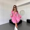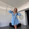 2025 Elegant Chiffon V-neck Ruffle Edge Design Dress Lace-up Long-sleeved A-shaped Skirt