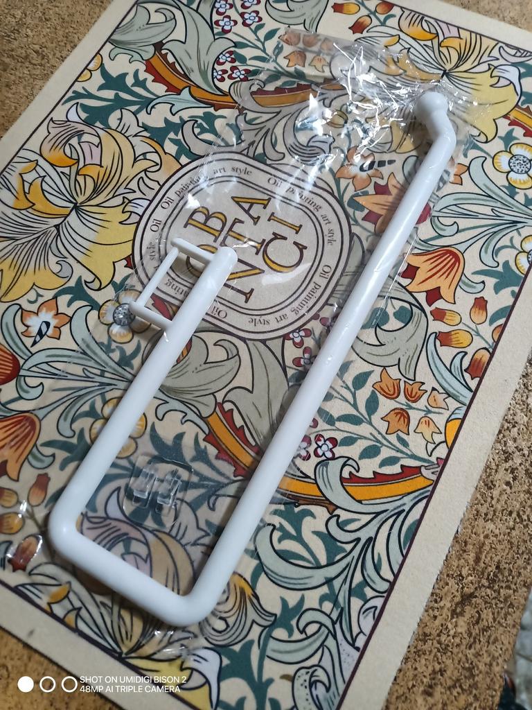 There isn't much to comment on about this product, it's a holder for the kitchen paper roll. I recommend it 👍 👍 👍🤩 👌 👌 👌. 📦 Package Content: Holder for the kitchen paper roll. Adhesive with hook. 👍Pros: Delivery to Spain in 26 days. ✈️ Well packed for the trip. Material is hard plastic. (ABS) Very easy to attach thanks to its adhesive with built-in hook. It's really very useful. 👎Cons: Nothing important to note. .