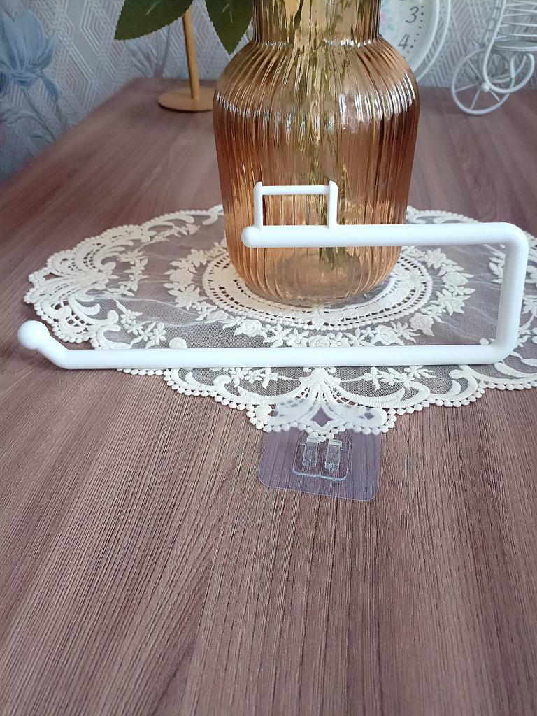 Paper towel holder Excellent, very comfortable. It can be mounted both on the wall and on the bottom of a kitchen cabinet Made of durable plastic, odorless. The installation kit includes a special adhesive-backed holder. I recommend 🤗
