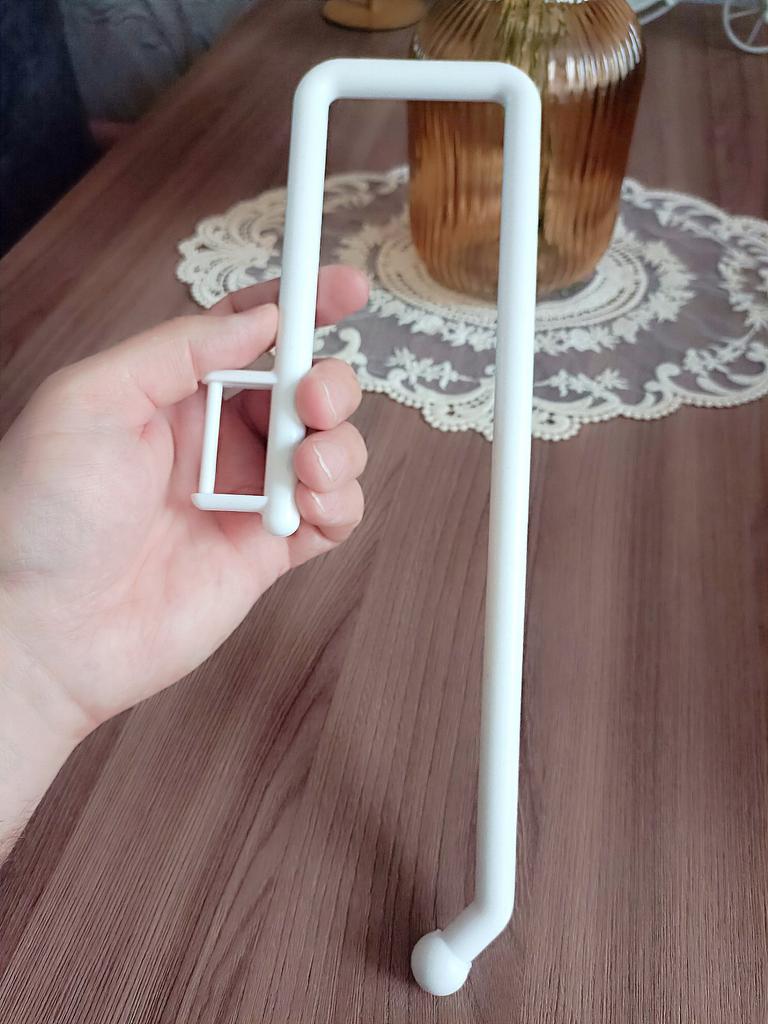 This kitchen roll holder is a convenient and efficient solution for keeping paper towels organized and accessible.. It can be easily hung on cabinet doors or shelves, thus saving space and helping to keep the kitchen tidy and clean.. The holder is stable, allows for quick roll change and is also suitable for toilet paper holders. Recommended for anyone who wants to upgrade their kitchen organization in a simple and efficient way.