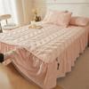 3pcs Duvet Skirt Pillowcase Quilted Bedspread, Elegant Style Ruffle Bed Flounce Wrinkle Resistant and Fade Resistant Bedding