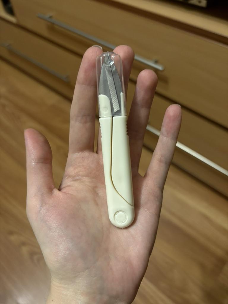 Ordinary scissors for a seamstress, convenient for trimming threads, I like using such ones when I sit at the sewing machine.