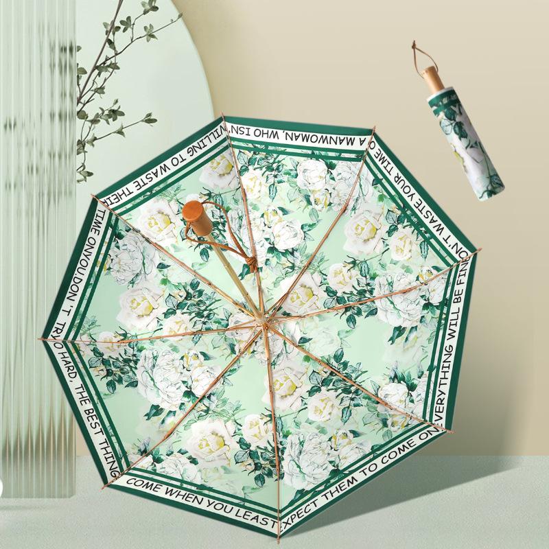 Titanium Silver Three-fold Retro Parasol Sun Protection Anti-folding Umbrella Portable Light Sun Umbrella Sun Protection Umbrella