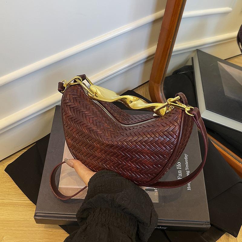 Fashion Woven Pattern Portable Crescent Bag Women's Bag Summer New High-end Texture Shoulder Underarm Bag Trendy Messenger Bag