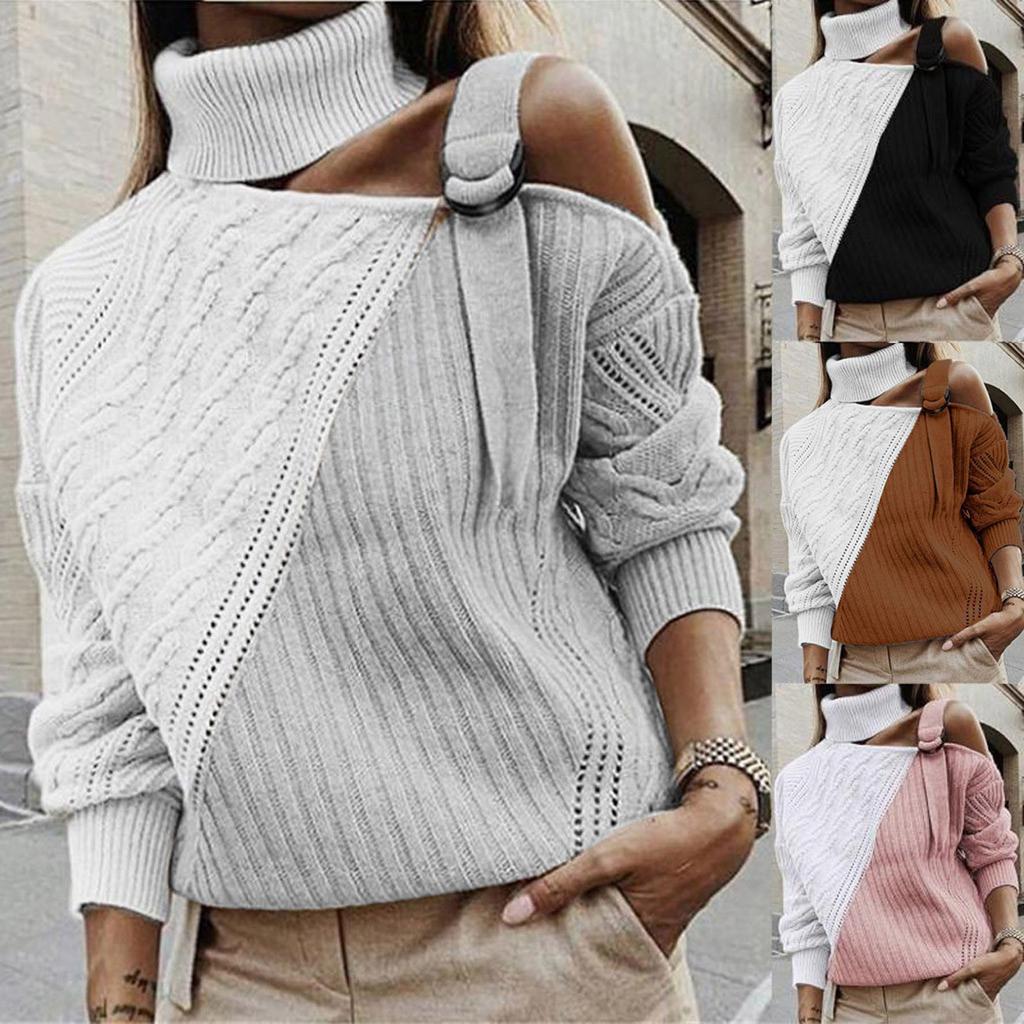 Features: 1.Designs:Long-sleeved ,Two-color Contrast,Stitching ,Stand Collar,Knit Sweater ;