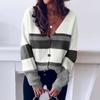 Winter Women's Knitted V-neck Stitching Button Striped Sweater Top