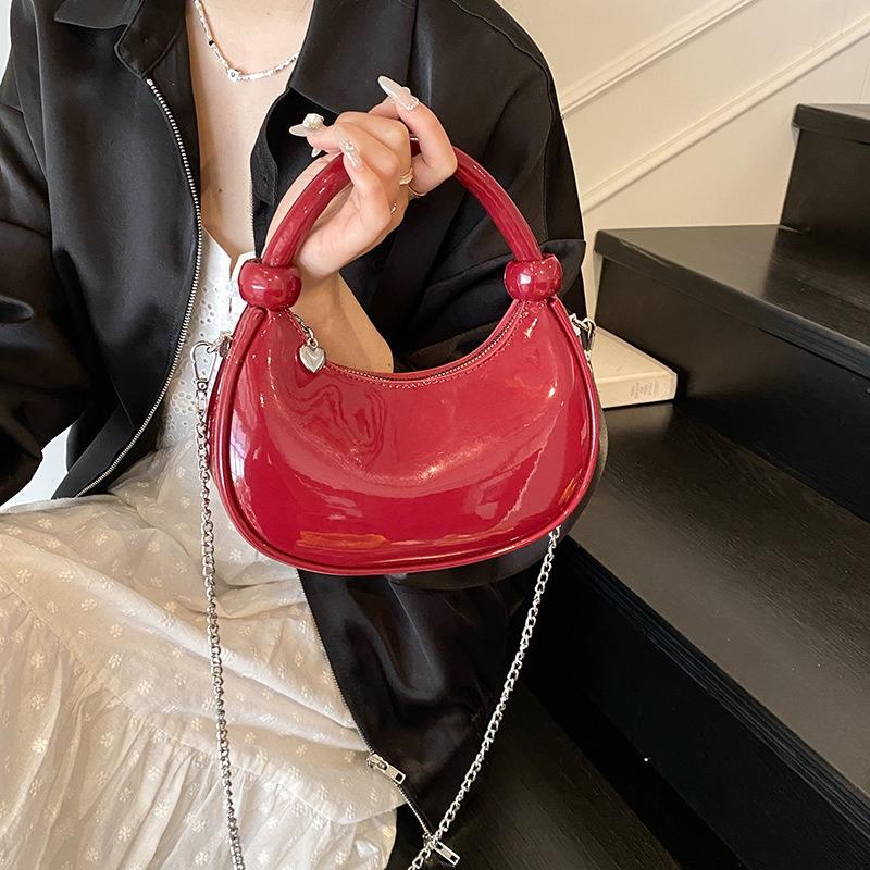Handbag Patent Leather Glossy Crescent Bag Wind Chain Niche Design Commuter Leisure Bag Women