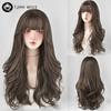 7jhh Wigs Honey Brown Wigs With Neat Bangs High Density Synthetic Loose Brown Hair Wig For Women Daily Use Beginner Friendly