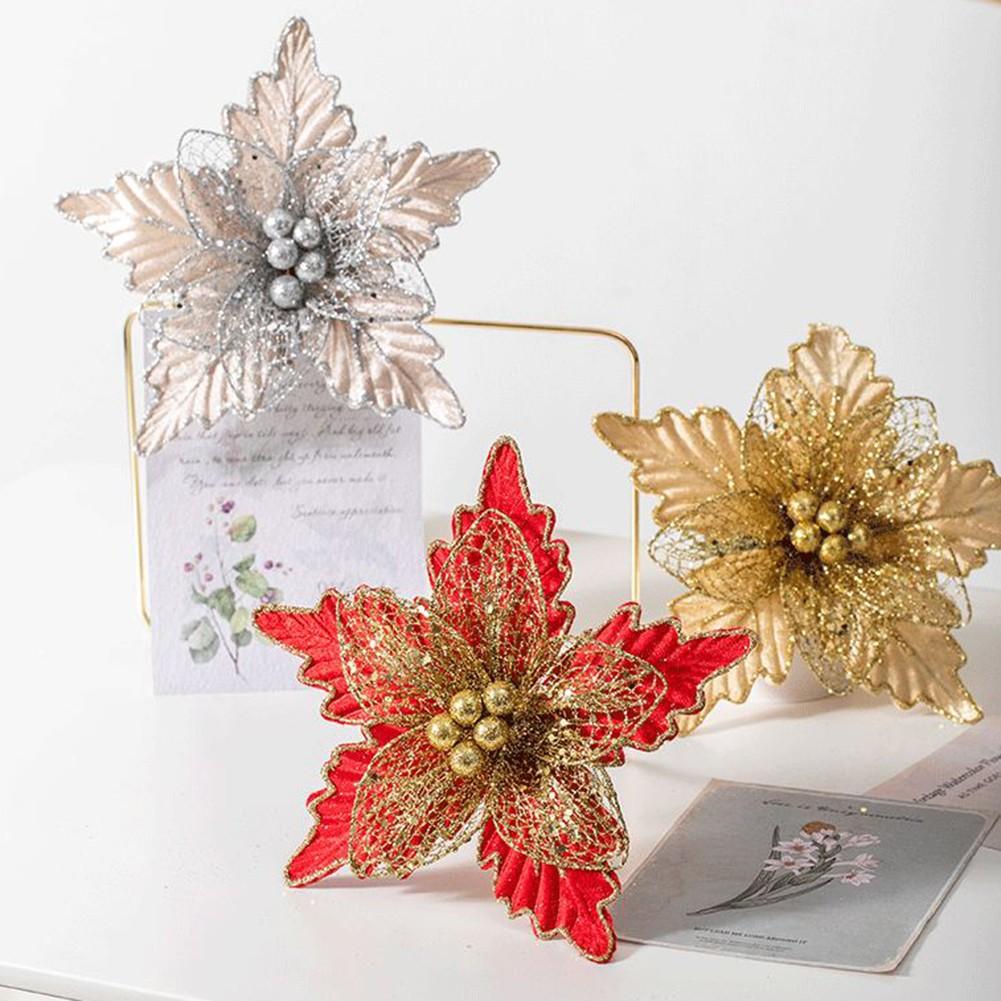 24cm Christmas Poinsettia Glitter Flower Hanging Xmas Party Tree Decoration
