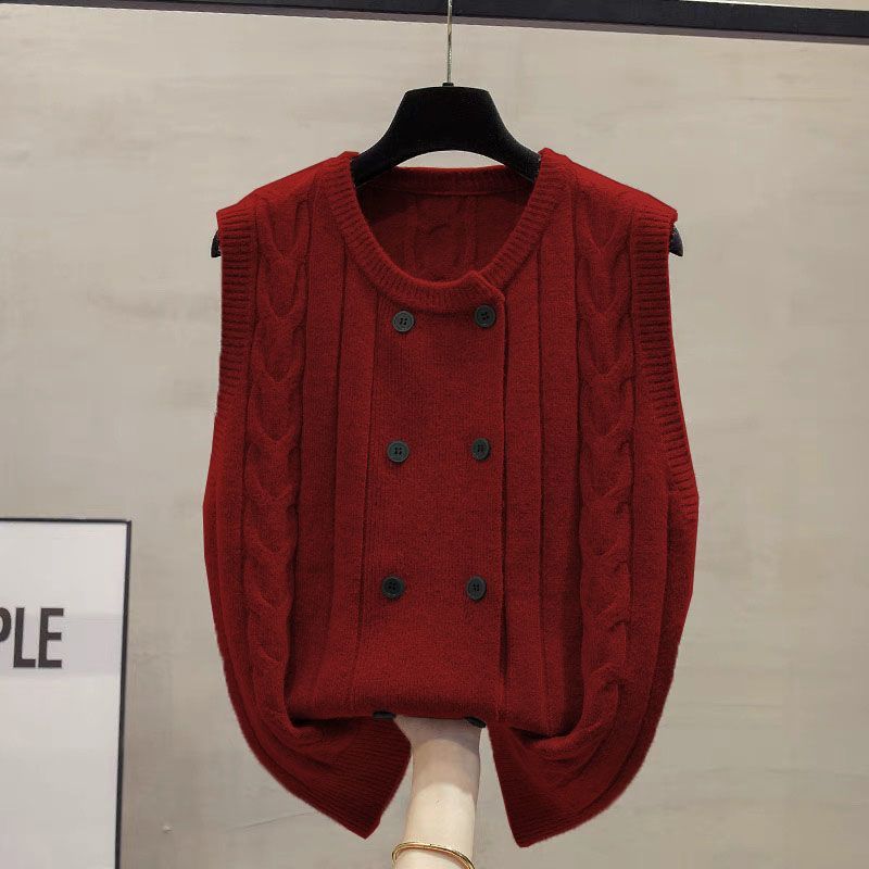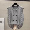 Round Neck Knitted Cardigan Vest Women's Spring Autumn Loose Outerwear Cable Knit Sweater Waistcoat