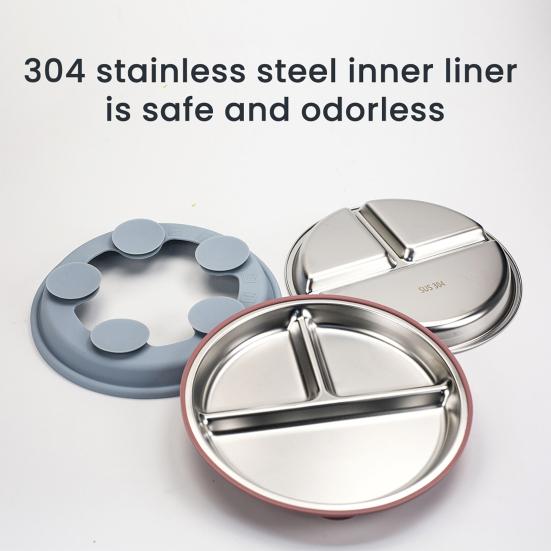 Heat-Insulated Innovation: Featuring an anti-slip silicone cover, this stainless steel dining plate effectively insulates heat, keeping meals warm longer. Say goodbye to cold food with this functional and practical solution that enhances the dining experience.