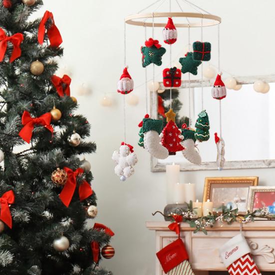 Charming Christmas Theme: Featuring felt decorations of reindeer, Christmas trees, stars, gifts, and snow, this charming Christmas wind chime brings the holiday magic to your baby's nursery. Create a festive atmosphere that captures the essence of the season's spirit.