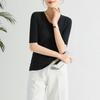 Women's Summer V-Neck Ice Silk Solid Color Knit Top Short Sleeve T-Shirt New Korean Style Loose Fit Casual Blouse
