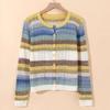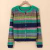 Spring Autumn Women Sweaters Cardigan V-Neck Color Striped Single Breasted Korean Fashion Casual Loose Long Sleeve Knitted Tops