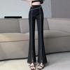 Korean Fashion Women Black Flare Pants Spring Autumn New Slim High Waist Streetwear Casual Split All-match Y2K Diamond Trousers