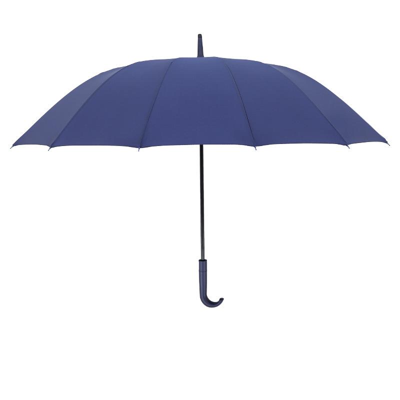 New 16-bone Long-handled Umbrella Small Curved Handle Umbrella Solid Color Simple and Strong Automatic Double Wind Resistance