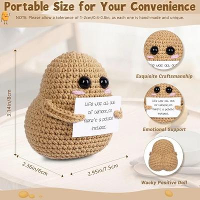 Crochet Potato Doll with Positive Card Emotional Support Handmade Mini Knitting Hat Potato Toy Home Office Desktop Decoration Ornament