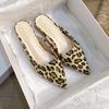 Leopard Mules Shoes for Women Slip On Square Heel Slippers Women 2024 Luxury Designer PU Leather Slides Elegant Office Shoes