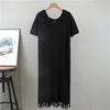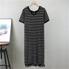 Women's Summer Short Sleeved Casual Knitted Striped Dress Tassel Mid Length Dress