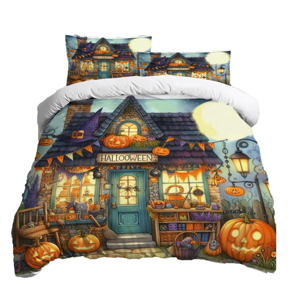 Halloween Three-piece Bedding Set Quilt Cover Pillowcase Brushed Fabric Thickened