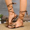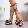 2025 Summer Women's Sandals Elegant Office Leopard Print Square Heel Sandals Hot Sale Butterfly-knot Flat with Shoes for Women
