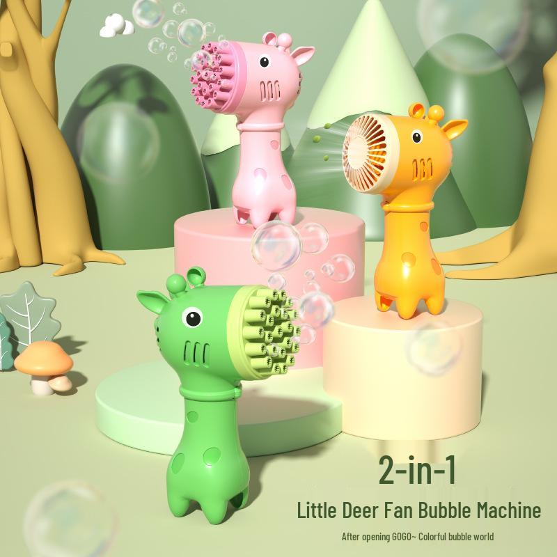 23-Hole Giraffe Bubble Machine & Cartoon Fan Toy for Kids