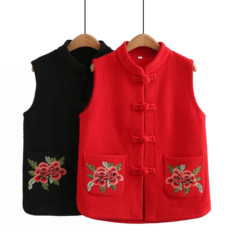 Spring and Autumn Waistcoat Women's Plus Size Western Style Thin Woolen Pocket Embroidered Waistcoat Fashion Waistcoat Jacket