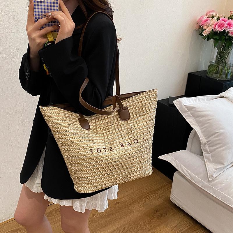 Straw Bag Women's Spring New Beach Woven Handbag Large Capacity Fashion Commuter Tote Bag