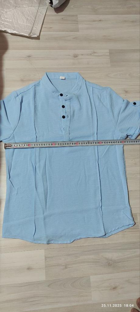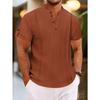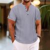 Summer Cotton Men's Short Sleeve Shirts Button Pleated Solid Color V-neck Casual Style Henley Shirt