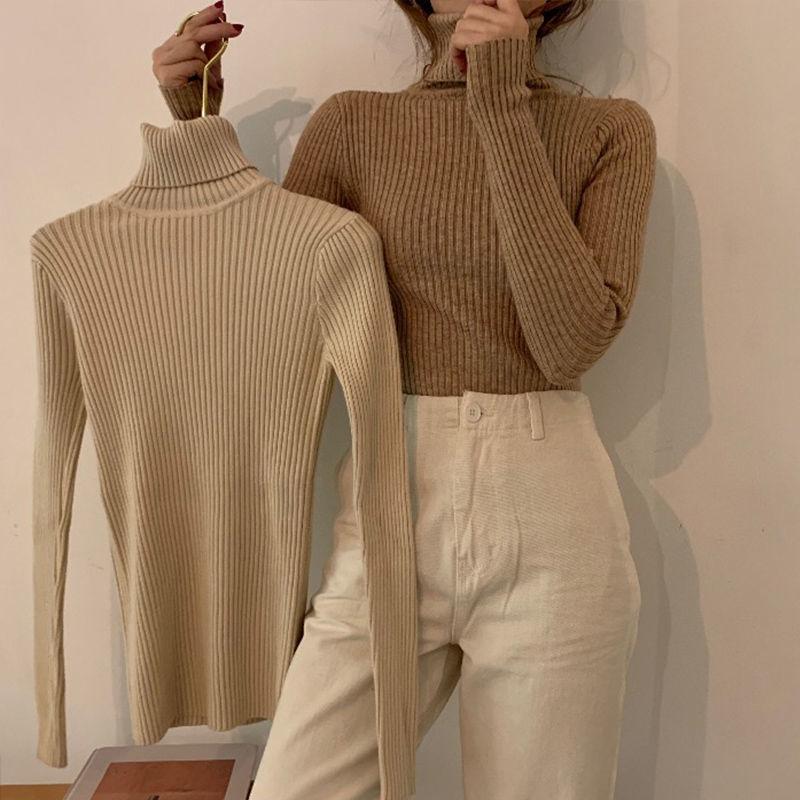 Women's Turtleneck Base Layer Autumn Winter Sweater Slim Fit Knitted Versatile Top