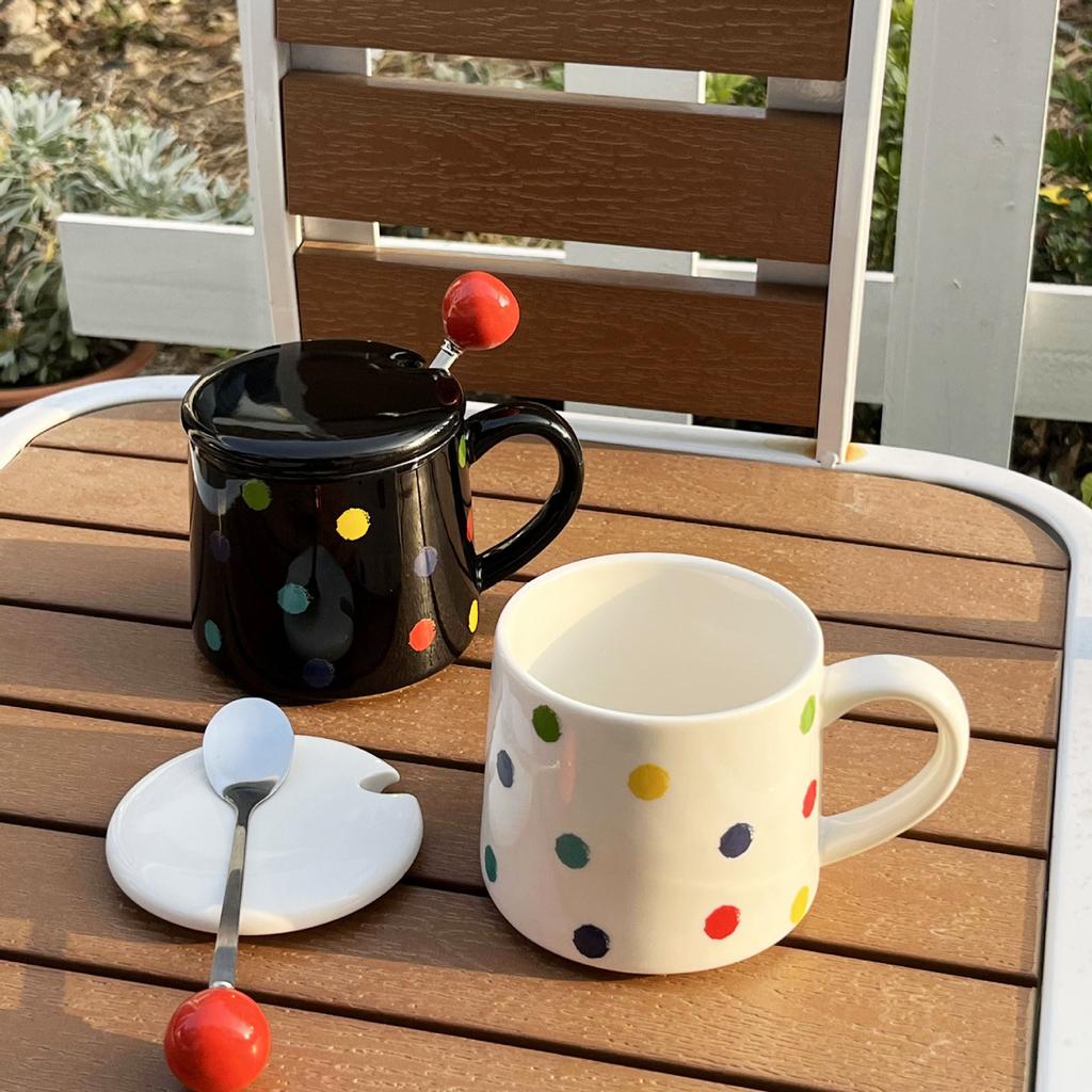 Korean Colored Mug with Lid Spoon High End Ceramic Cup Household Water Cup Living Room High Value Coffee Cup