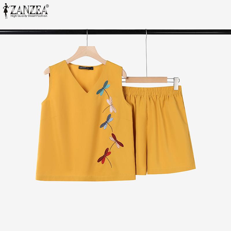 ZANZEA Women Sleeveless Tank Tops and Shorts Summer Two Piece Suit Sets