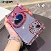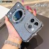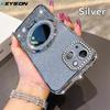 KEYSION Luxury Glitter Jewelled Magnetic Phone Case for iPhone 13 14 Pro Max Makeup Mirror Ring Stand Shockproof Back Cover