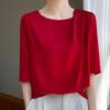 Elevate your summer wardrobe with this luxurious short sleeve satin top, designed for elegance and comfort. Crafted from premium acetate fabric, this high-end T-shirt boasts a smooth, silky finish with a solid pattern that adds a touch of sophistication. The round neckline and short sleeves offer a classic silhouette, while the fringe decoration provides a unique and fashionable flair. Ideal for both casual outings and upscale events, this top combines style and versatility for the modern woman.