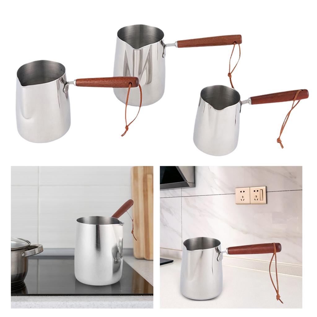 Practical Coffee Pots Milk Frothing Pitcher Stainless Steel Coffee Pots With Wood Handle For Home Cafe Use
